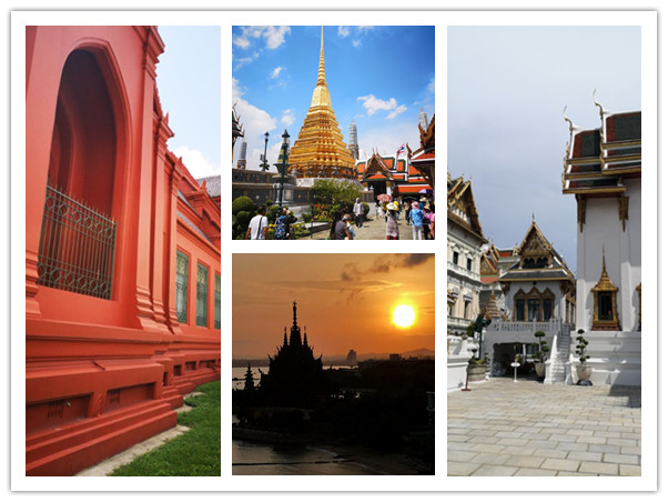 曼谷的大皇宫建于十八世纪末期,结合了泰、中、西艺术风格,金碧辉煌,庄严典雅,雕刻工艺精湛,经历了两百多年的辉煌历史。壮丽美观的宫殿和雄伟万千的佛寺建筑,汇集了泰国建筑、绘画、雕刻和装潢艺术的精粹。充分体现出佛教精髓已深植于泰国文化中,并洋溢着民族与宗教的和谐色彩。