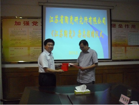![]() 本次捐赠,向市档案馆和图书馆分别捐赠了2004年至今《江苏陶瓷》杂志110本,陶研所徐建华、邱永斌等编著的《陶瓷花釉与装饰艺术》2本,陶研所原所长钦征骑主编的《新型陶瓷材料手册》2本。