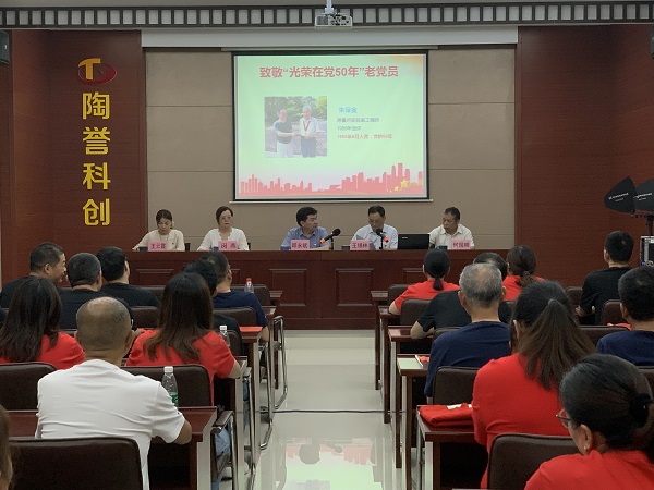 在建党100周年的特殊历史时刻,党中央首次颁发“光荣在党50年”纪念章,我公司也有5位党员获此殊荣。大会开始,公司党委委员、副总经理王锡林先介绍了5位老同志的概况,表达对老党员们的关爱关怀,增强荣誉感、归属感、使命感,激励党员同志们拼搏奉献,接续奋斗。