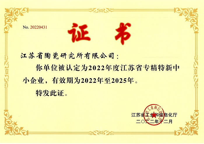 此次荣获“专精特新”企业称号,是对陶研所的创新能力、专业能力的认可,也是对公司行业影响、市场前景等方面的肯定。