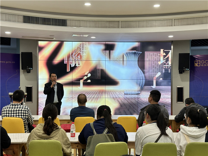 高淳陶瓷股份有限公司副总经理周玉明为陶研青年们介绍高淳陶瓷相关情况,并观看高淳陶瓷介绍片。